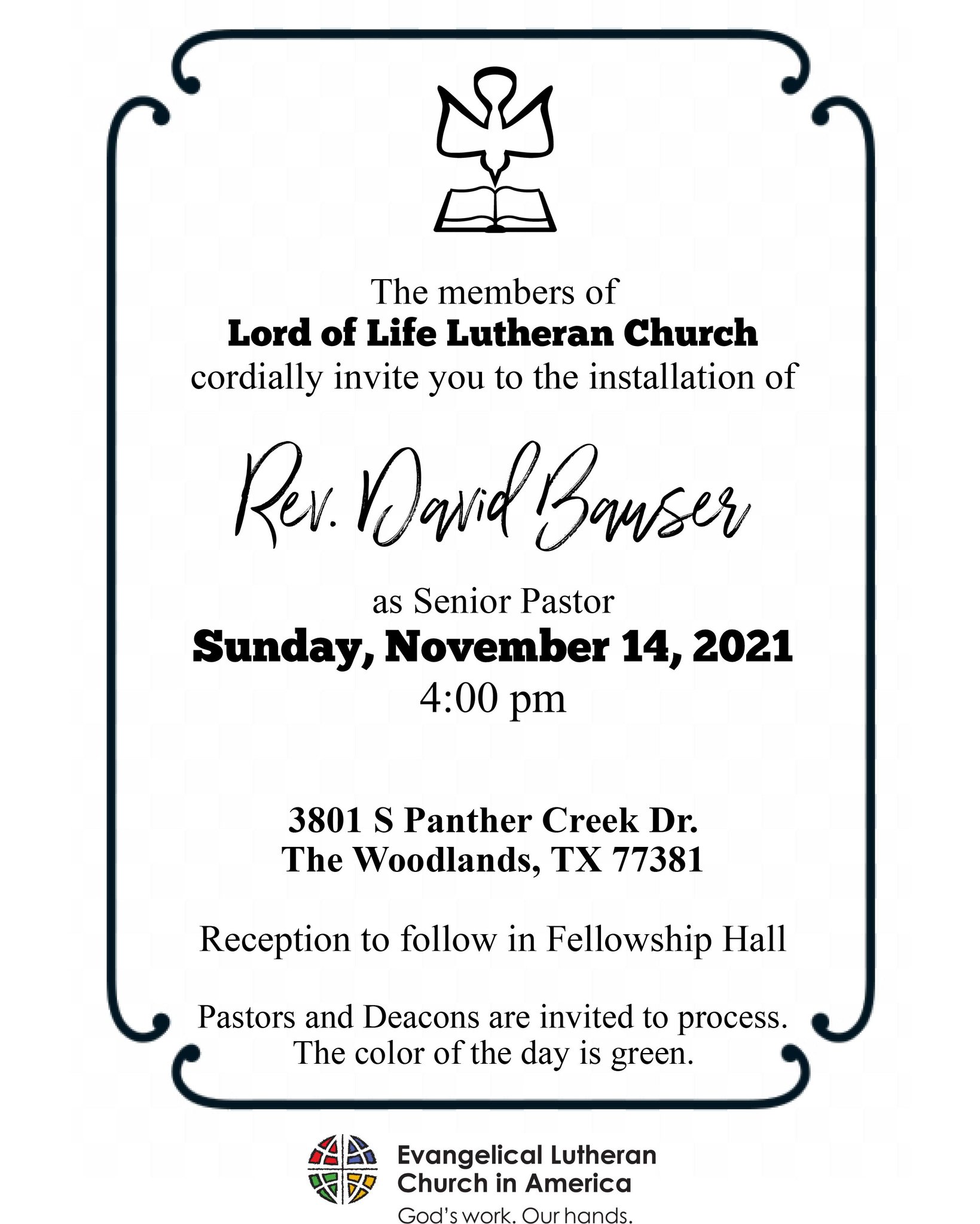 Gulf Coast Synod On Twitter Pastor David Bauser Has Accepted A Call As Senior Pastor At Lord Of Life Lutheran Church An Installation Service And Reception Will Be Held On Sunday November 14 At 4pm There Will Be A Reception Following And All Pastors
